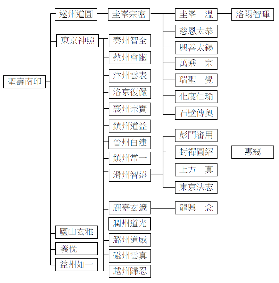 附圖:「聖壽南印」及其以下法嗣35人傳承圖。